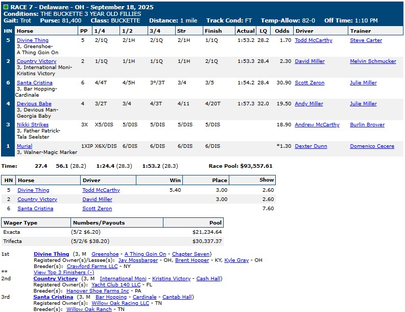 Gait: Trot Purse: 81,400 Class: BUCKETTE Distance: 1 Mile