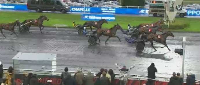 The winner scored for the 10th time in 46 career starts for 397,070€. Janko Haufor (6f Django Riff-Ukraine Haufor) was second at 1.8/1 favorite odds handled by Damien Bonne for Christian Bigeon, his trainer/owner/breeder. Jongleuse de Luna (6f Cash And Go-Colombe Royale) landed third at 84 also facing the 25 meter handicap with Alexis Collette up. Hurricane Carter at 4.4/1 and 7.4/1 Jacomo Bello completed the top five.
