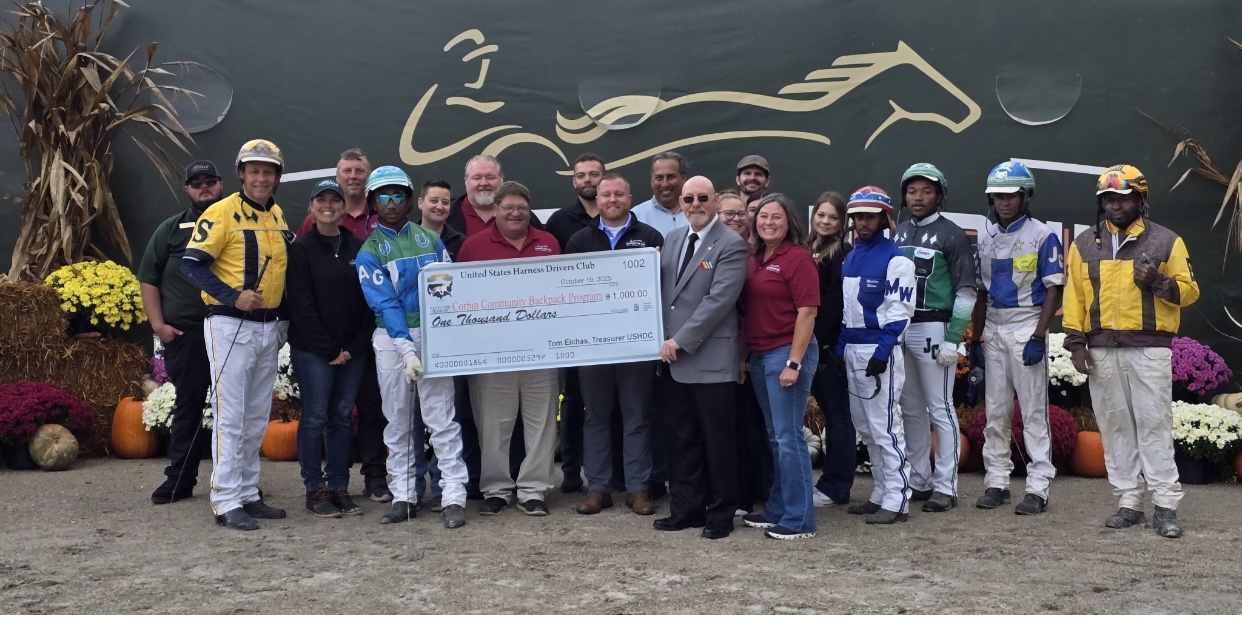 Corbin, KY…October 20, 2025…The United States Harness Driving Club (USHDC) paid tribute the the Corbin Community Backpack Program on Sunday, October 19, at Kentucky’s Cumberland Run and it was the eight-year-old son of Somebeachsomewhere, Mankat, handled by Adarryl Gates, winning in 1:56.2.