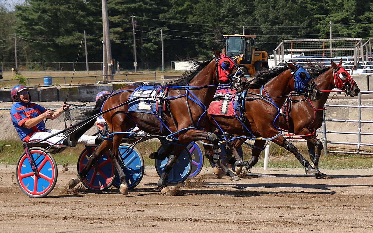 TOPSHAM, ME – The Pine Tree State’s sophomore pacing sensation, Massive Speed (Dude’s The Man), eked out his sixth straight harness racing victory at the Topsham Fair on Thursday (Aug. 7) afternoon, with two of his colleagues trying valiantly to defeat him.