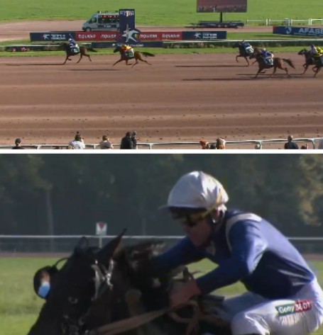 He defeated 135/1 odds Miss des Besaces (3f Memohis du Rib-Candeira Turgot) that jockey Alan Gendrot handled for trainer R.C. Larue and Ecurie de Windcut. Manitas de Truchon (3f Etonnant-Gloria des Gery)was third at 69/1 odds with Mathis Champenois up for owner/trainer Richard Westerink.