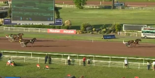 Today’s Enghien-Soisy featured Prix du Pont Charles de Gaulle (purse 60,000€, 2875 meters voltstart, 12 European five year old starters) saw 2.6/1 odds Nelson Greenwood (5m Tobin Kronos-City Of Angels) score timed in 1.12.8kr with Alexandre Abrivard driving.