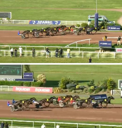 She won for the second time in eight starts for 29,205€ earned. Second home was 12/1 Madness Sam (3f Drole de Jet-Uptown) driven by Robin Lamy for Francis Jung and trainer Thomas Levesque.