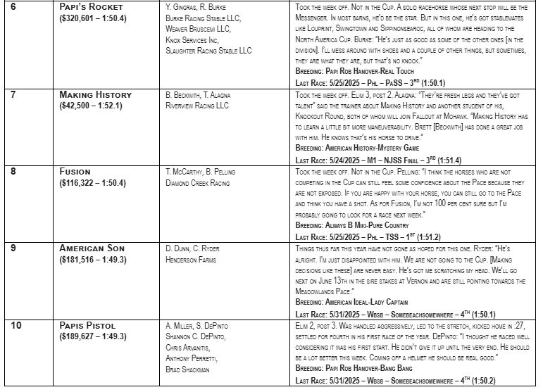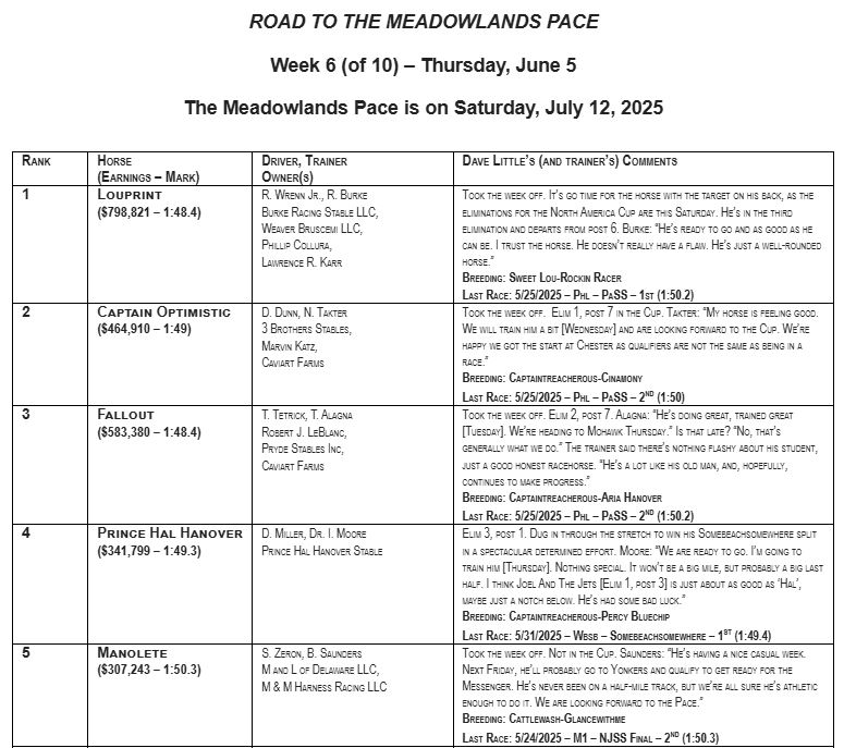 No Changes to 2025 Road to the Meadowlands Pace week 6