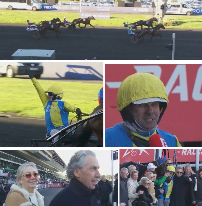 He defeated 8/10 odds favorite Nob Hill (3m Gud’Heripre-Idylle A Vie) driven by trainer Mathieu Mottier for Ecurie D.M.Mottier. Nuevo Cash (3m Ready Cash-Enamorada) was home third at 2.8/1 odds driven by Theo Duvaldestin for trainer Thierry Duvaldestin, Never Forget (3m Hohneck-Valley Victoria) landed fourth at 25/1 witgh Esteban De Jesus up for trainer Alexandre De Jesus followed by 28/1 Nat King Cole (3m Ready Cash-Deep Purple) with David Thomain handling the Philippe Allaire owned/trained/bred colt.