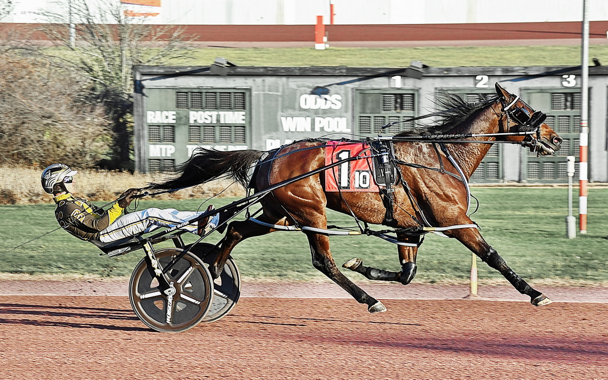 The fast-class pace was the last race on the card, and in a dramatic finish the Sweet Lou gelding Dream Bird came from last at the stretch call to catch the chalk I Did It Myway in 1:51.4 for Burke Racing Stable LLC, Knox Services Inc., David Wills, and J&T Silva- Purnel & Libby. Dream Bird had no wins but seven seconds this year before his upset, which helps to explain the $120.60 win price.