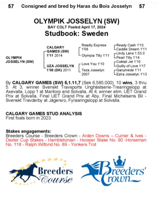 • Lot 57 Olympik Josselyn (SWE) male by Calgary Games-Uza Josselyn) for 270,000€ to Erik Dahl