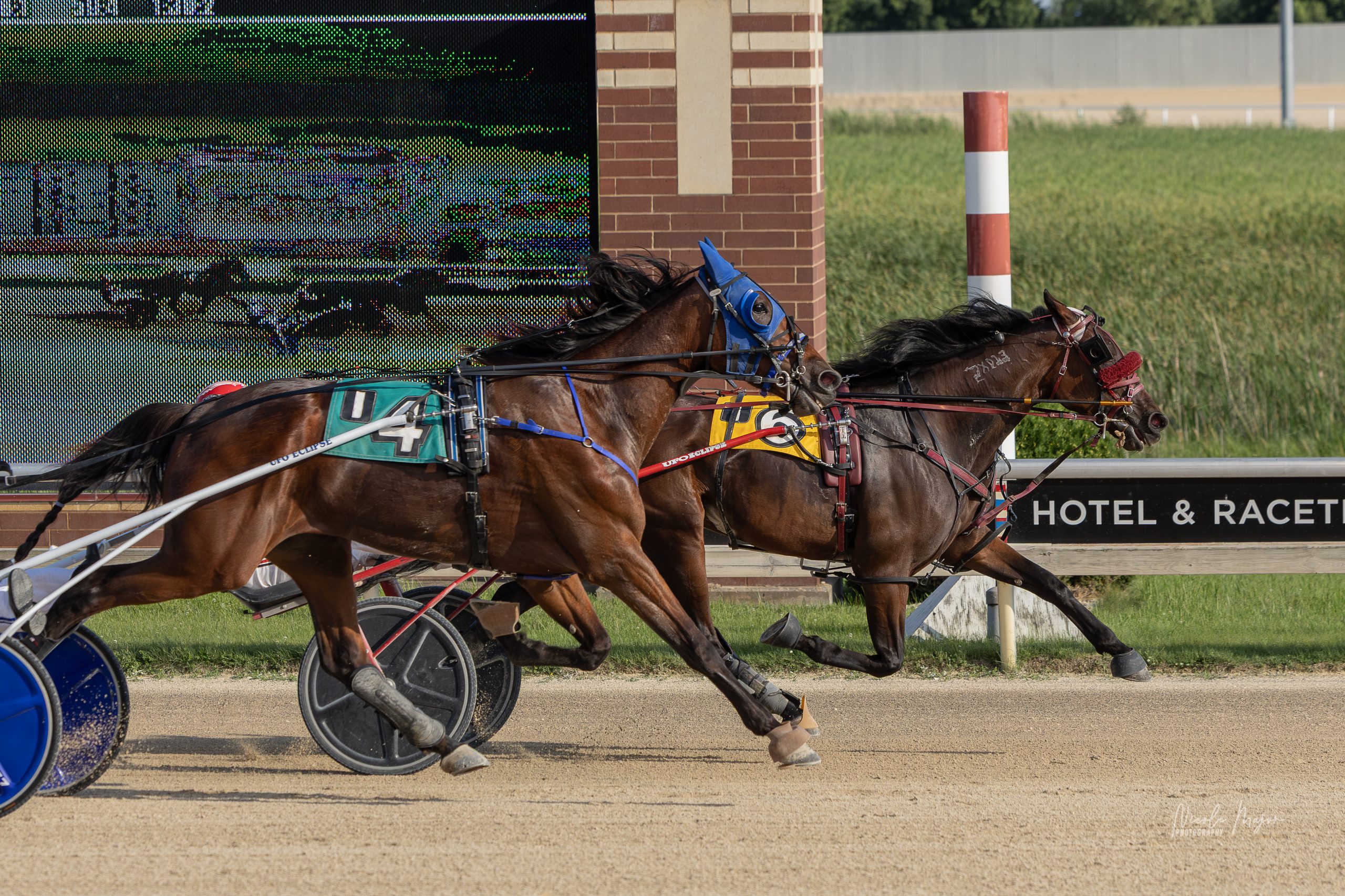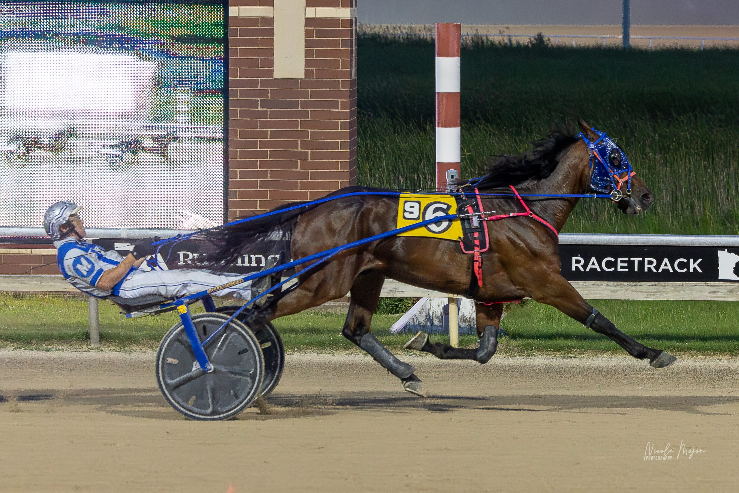 Columbus, MN – The Sunday night (July 13) harness racing program at Running Aces featured top trotters in the spotlight including two divisions of Minnesota-sired sophomore action going for $17,500 in each split.