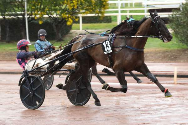 Happy Danica (8f Briac Darc-Rive Bleue) captured today’s Cagnes sur Mer featured Prix Une de Mai (purse 49,000€, 2925 meters, 15 starters ages 8-11) timed in 1.12.2kr over the sloppy course.