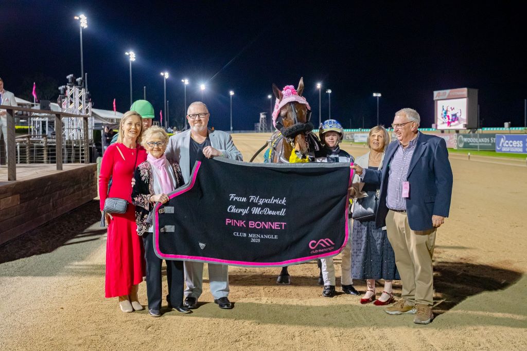 Star filly Quatro Moth (Rock N Roll Heaven) led for most of the way for a narrow but convincing harness racing win In the Group 3 $50,000 Franz Fitzpatrick Cheryl McDowell Pink Bonnet mile at Menangle Park on Saturday night.