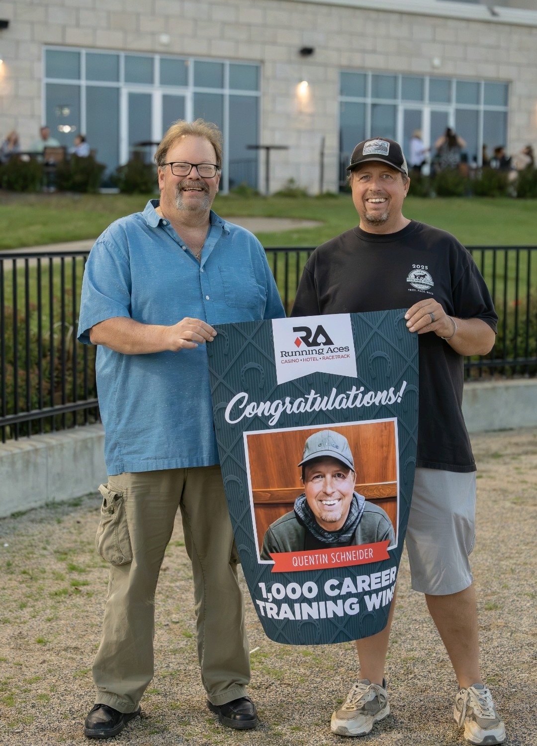 Trainer Quentin Schneider was recognized and celebrated at Running Aces on Thursday night (September 11) for recently surpassing 1,000 harness racing career training wins.