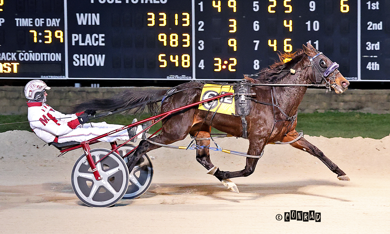 Page guided four Ron Burke trainees to victory – Brink Street (1:56), Hilltop Sonar (1:54.1), Bravo Hill (1:57.2) and Banderas (1:52). His other winner was the Steve Carter trained Beach Master Keene (1:54.4).
