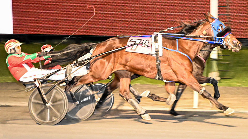 The co-featured $10,500 winners-over distaff pace saw Michael Somerville’s homebred Dice Dice Baby turn a pocket trip into a 1:53.2 score over Thats A Huge Beach. Roger Plante Jr. drove the 7-year-old Rockincam-Miss Reba mare, who paid $14.00 to win, for trainer William Cox.