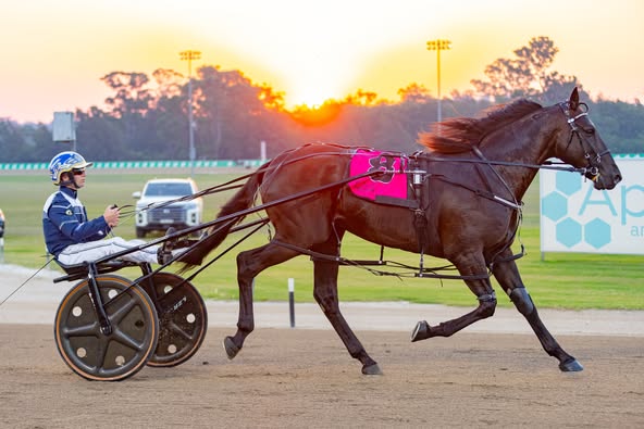 Glamour Queensland colt Fate Awaits was a bit wide early but driver Grant Dixon allowed him to race up outside the leader before Xpress Party whizzed around the field to give Fate Awaits a trail.