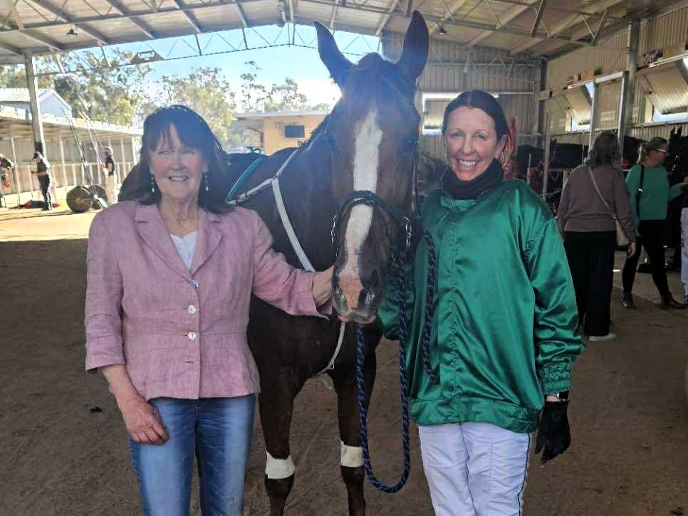 Successful combo Janet Exell (left), Kerryn Manning and Salute To Sunny after their Charlton win (VSTA photograph)