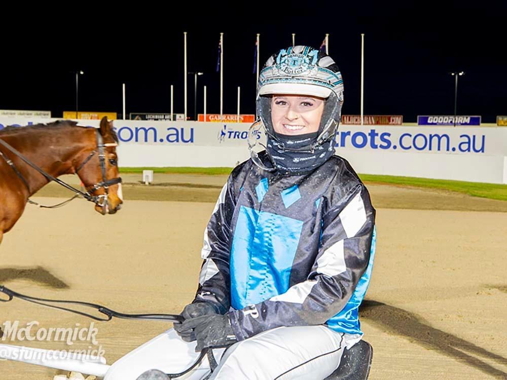 The 22-year-old was taken to the Goulburn Valley Health hospital after race three when the second starter she was driving, Aussie Jay Mac, galloped then fell heavily while racing at the rear of the field.
