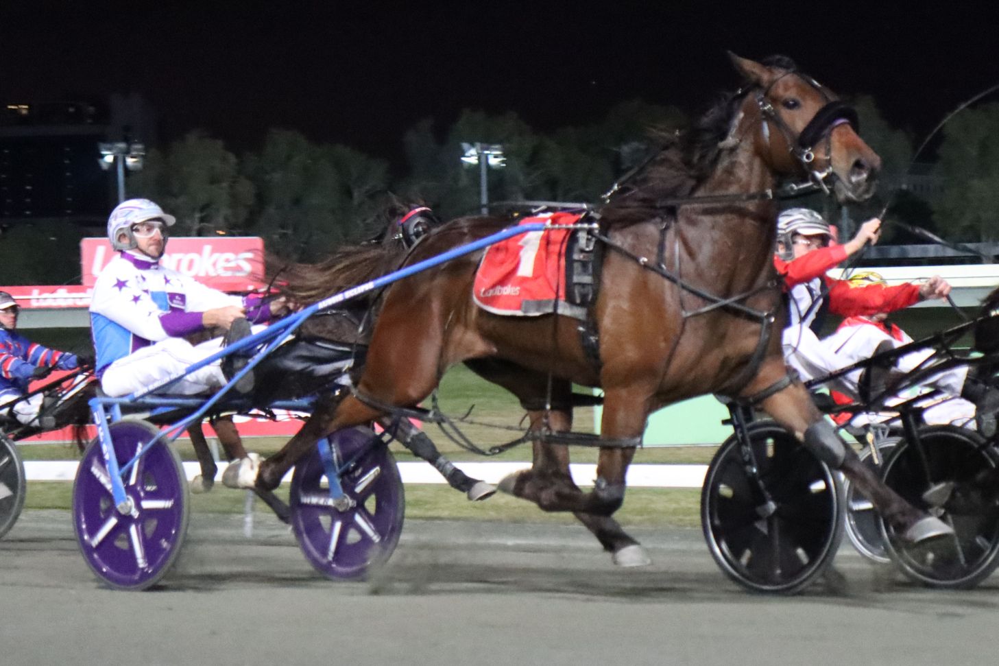 New South Wales visitor Ripp who has a fast turn of pace was taken around the field by his driver Bernie Hewitt. The situation looked grim as they went along the back straight as he was still locked away. Ripp took the lead on the final bend but at that point Pete McMullen eased The Janitor off the rails and although out three wide on straightening literally sprouted wings to put the issue quickly beyond doubt.