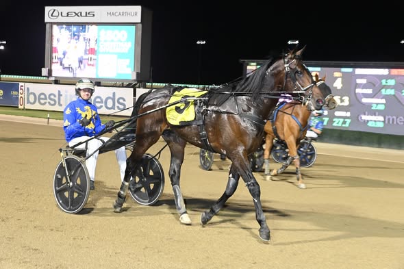 The win capped a great night for Hewitt as earlier in the evening Captains Knock was successful and then his three year old filly Isla Rochelle (Sweet Lou) stormed home to take out the Ultra Air Pace in 1.50.8.