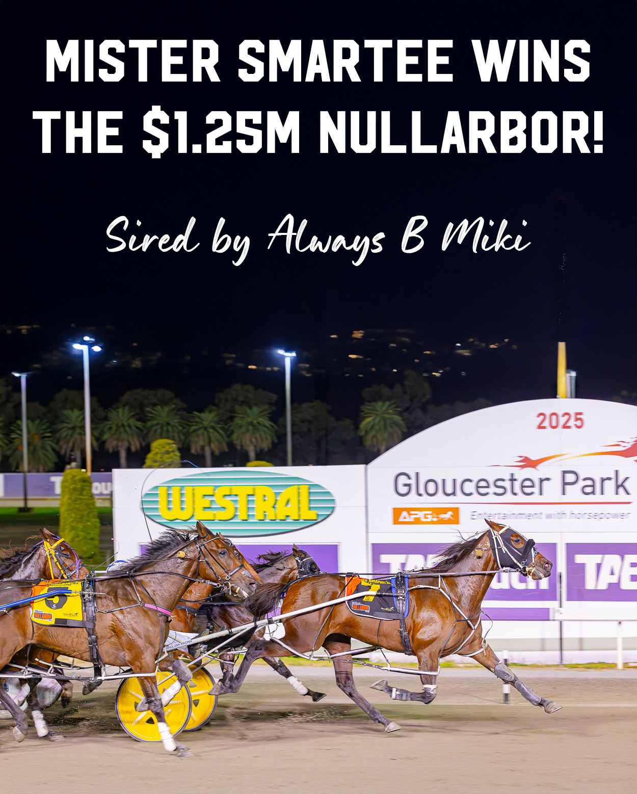 Mister Smartee (Always B Miki), who won the $1.25million The Nullarbor at Gloucester Park, is a NZ bred gelding with an interesting and successful family background.