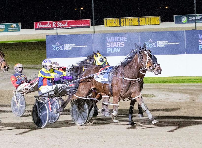 Harperseven, the last stride winner of the $50,000 Australian Pacing Gold Melbourne Sales Graduate for two-year-old trotting fillies, run at Melton, is a daughter of the Chapter Seven horse Helpisontheway, whose frozen semen will be available this season from Geoff and Lorraine Barnes, of Balmain Lodge, Tatura (Vic.).