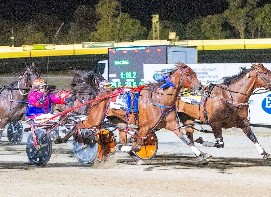 The Leeton Pacers Cup, the first leg of the Riverina cups circuit, was won decisively by Dashing, a gelding by Art Major from the great racemare Frith (by Four Starzzz Shark), who took a mile record of 1:50.1 with a total of $1.1 million to her credit.